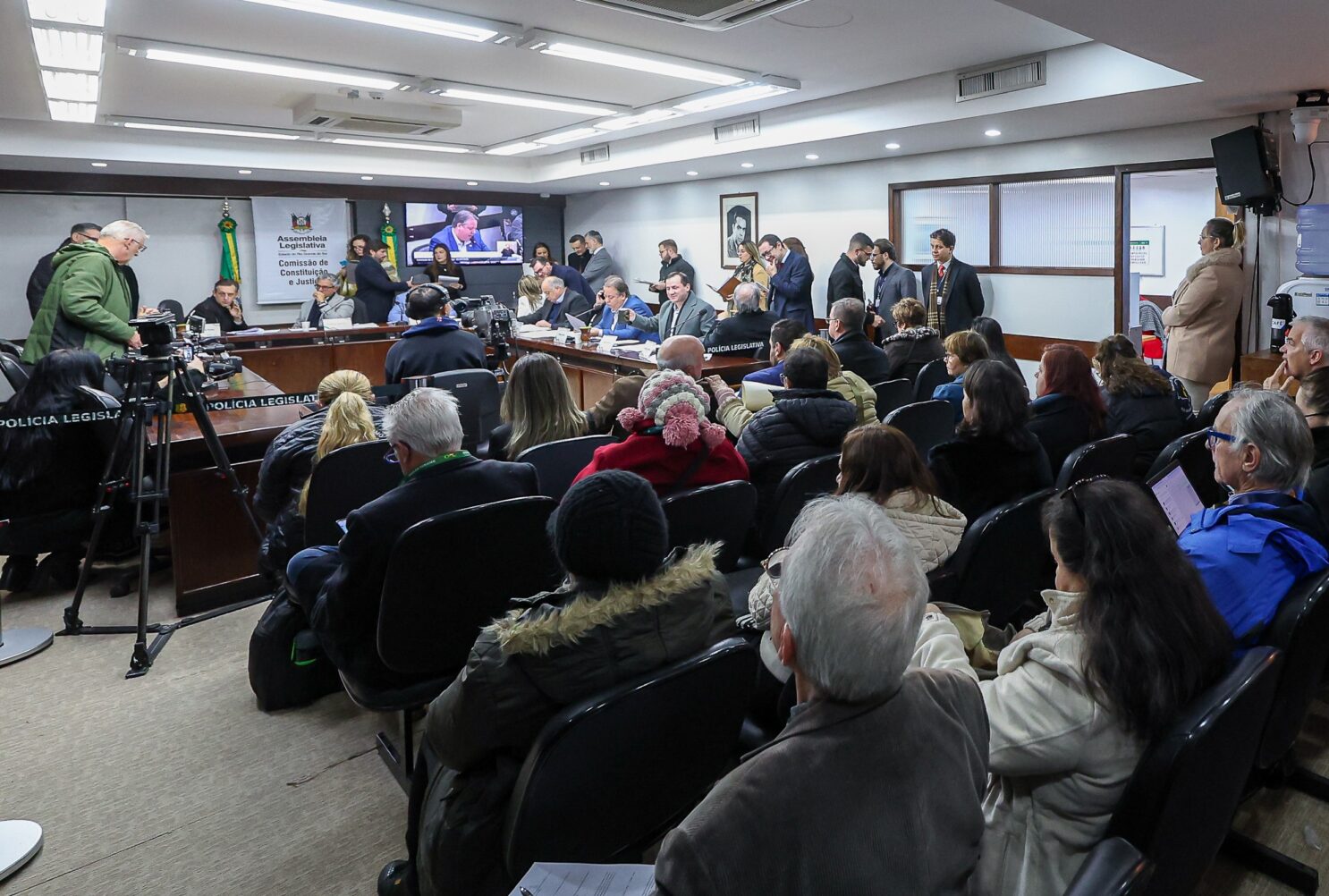 Com a sala Alberto Pasqualini lotada, inclusive de manifestantes pró CPI da Corsan, a Comissão de Economia, Desenvolvimento Sustentável e do Turismo se reuniu nesta quarta-feira(31). Sem as esperadas participações da conselheira-substituta do Tribunal de Contas do Estado, Ana Cristina Moraes Warpechowsk, e do procurador-geral do Ministério Público de Contas do RS, Geraldo Da Camino.