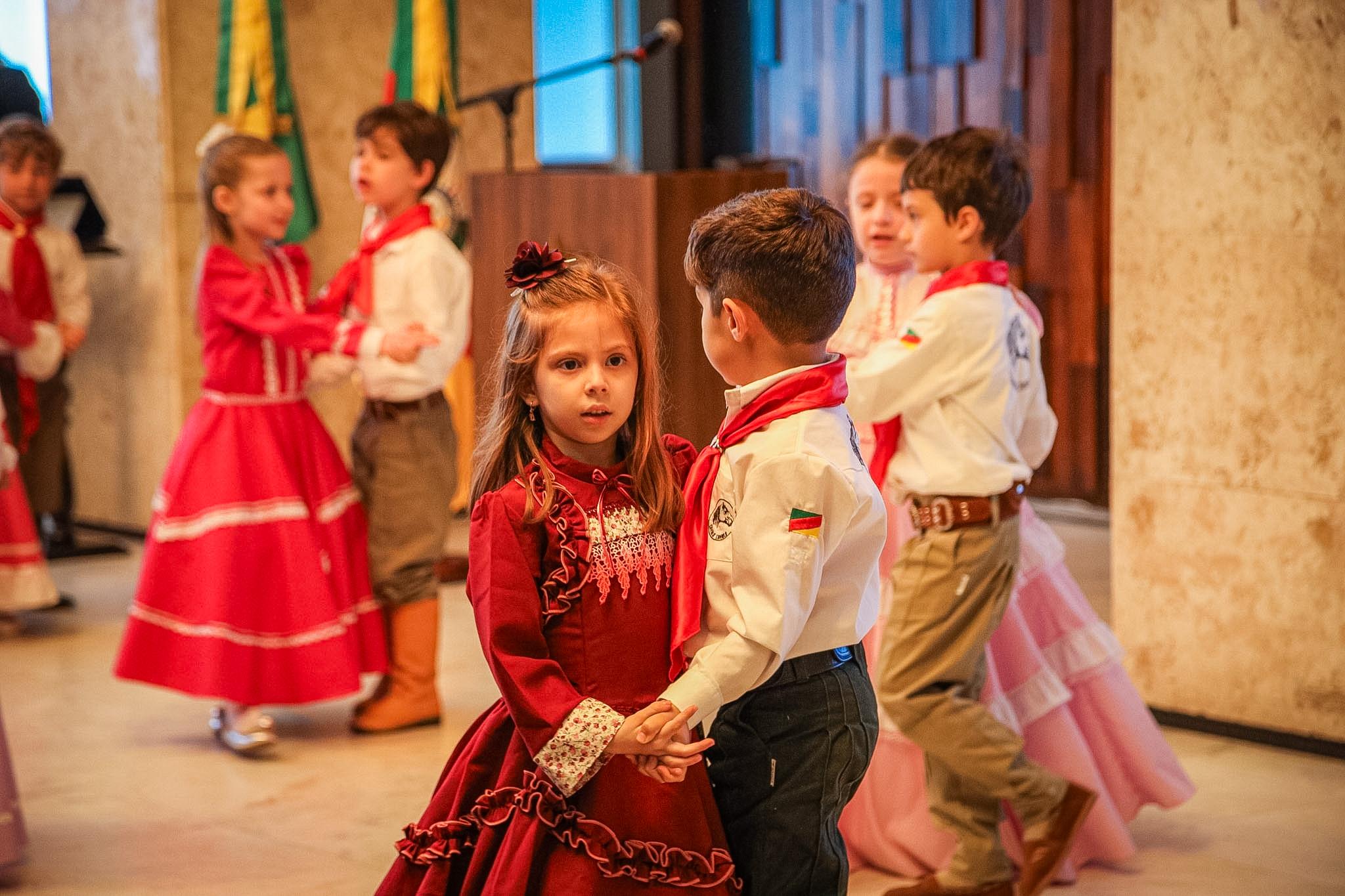 Durante o evento, o público foi encantado pelas apresentações de dança dos alunos da Educação Infantil e do Ensino Médio, além da participação marcante do gaiteiro Lucca Lavarda.
