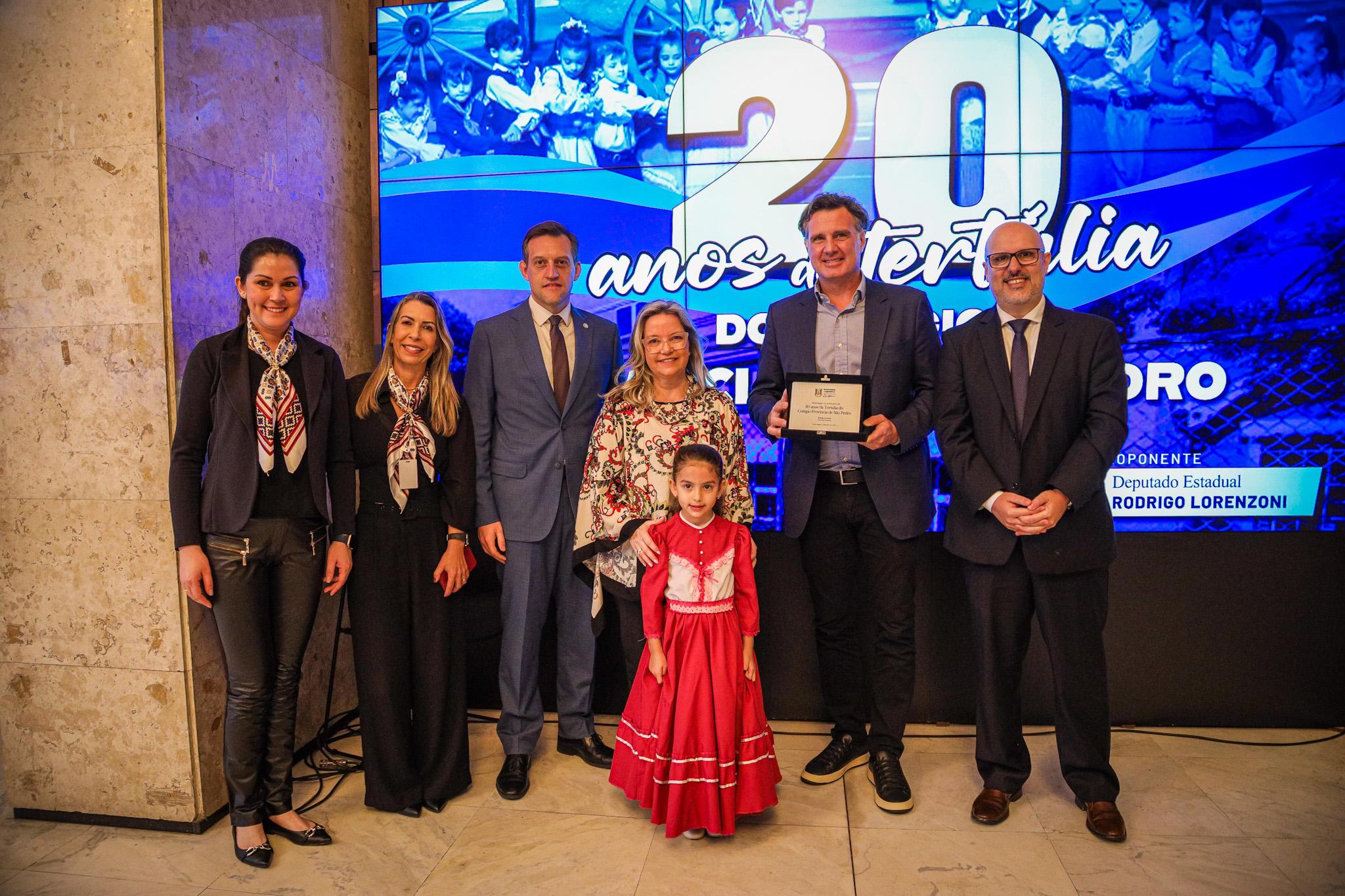 Nesta terça-feira (30/09), o deputado Rodrigo Lorenzoni prestou uma homenagem especial aos 20 anos da Tertúlia do Colégio Província de São Pedro, em cerimônia realizada no Salão Júlio de Castilhos da Assembleia Legislativa do Rio Grande do Sul.