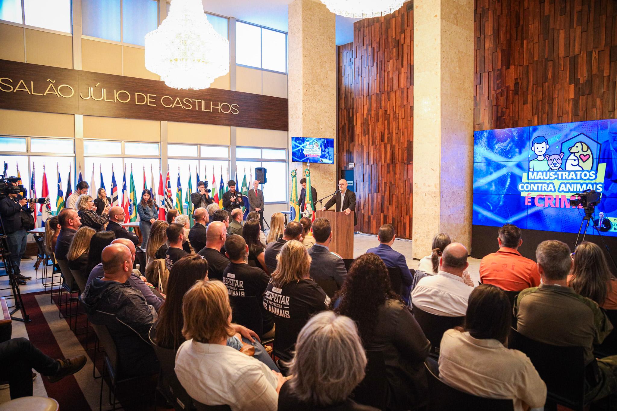 Aconteceu nesta segunda-feira (6), no Salão Júlio de Castilhos da Assembleia Legislativa do Rio Grande do Sul, o ato de instalação da Frente Parlamentar de Combate aos Crimes de Maus-Tratos Contra Animais, em alusão ao Dia Mundial dos Animais, celebrado em 4 de outubro.